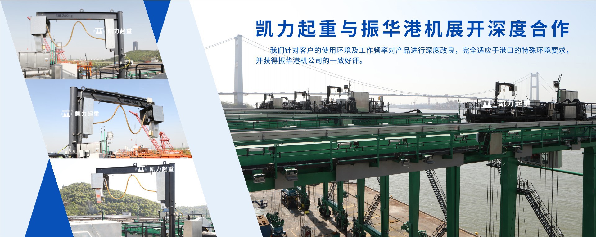 我司的旋臂式起重機在取得CE(歐盟)認證后,得到了振華港機的青睞,陸續簽訂了上海宜東港、廈門...